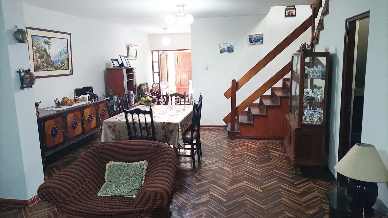 Venta de casa en San Roque, Santiago de Surco, con 323 m2 de área construida en un lote de 120m2. El predio se encuentra ubicado en una zona residencial de densidad baja – RDB. Inscrito en SUNARP con titulo de propiedad y registrado en la Municipalidad de Santiago de Surco. Cuenta con 5 habitaciones, cuarto de servicio, 3.5 baños, cocina, área de lavandería, sala de estar y comedor. Pisos de parquet y escaleras de madera. Buenos acabados y estructura en buen estado. En el tercer piso hay un departamento de material aligerado con 3 habitaciones, baño, salita comedor y cocina.